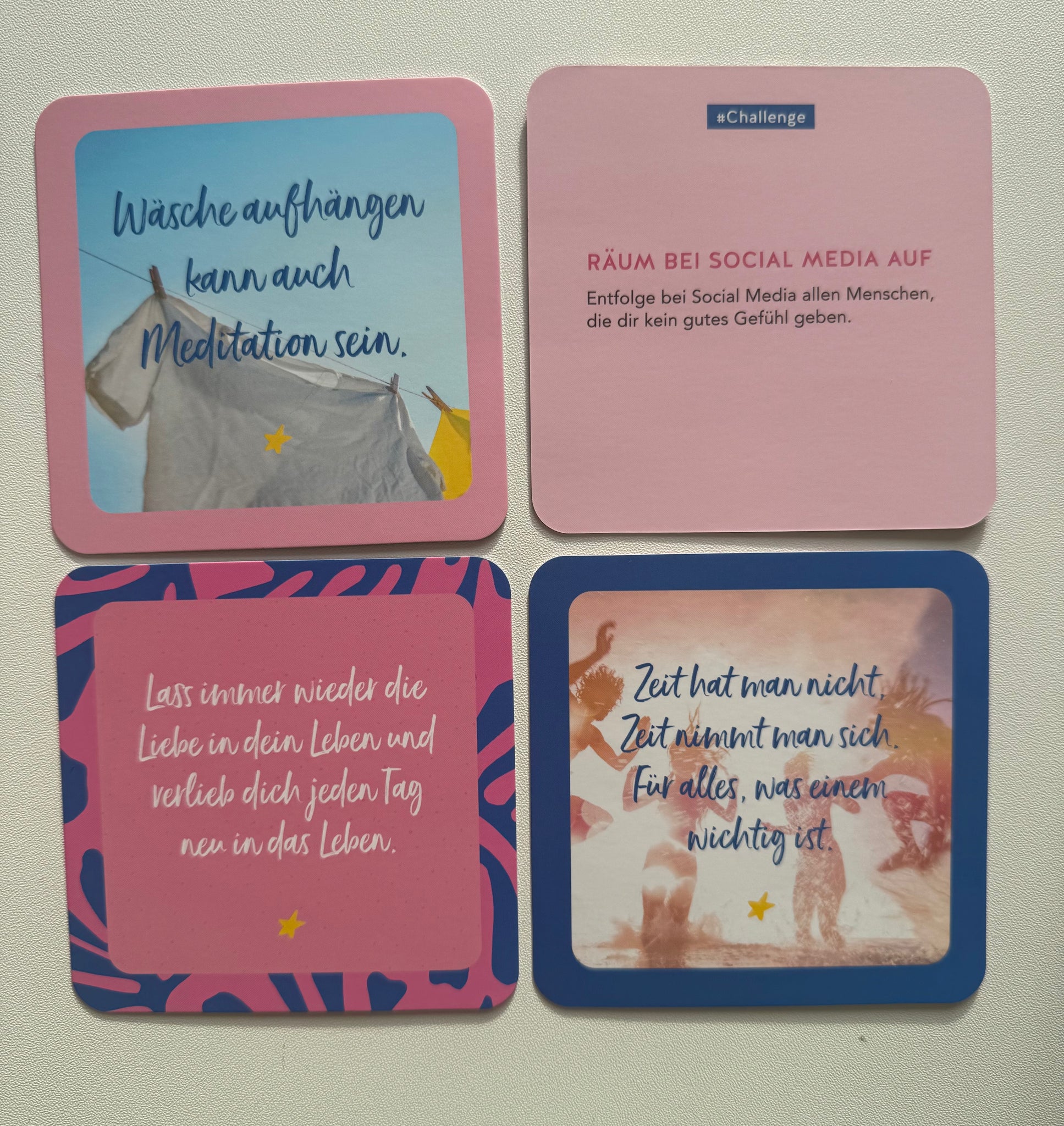 Inspirations & Motivationskarten für jeden Tag, auch zum aufstellen. Kleine Challenges warten ebenso auf dich 🙌🏻